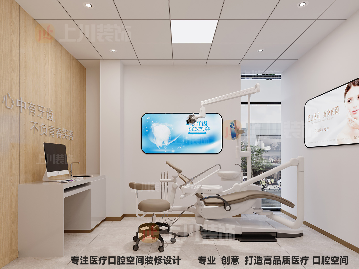 口腔门诊整体设计通过材质、色彩与动线的精心规划,突显口腔医疗空间的专业感与人文关怀,为医患创造一个放松、信赖的口腔诊疗环境。